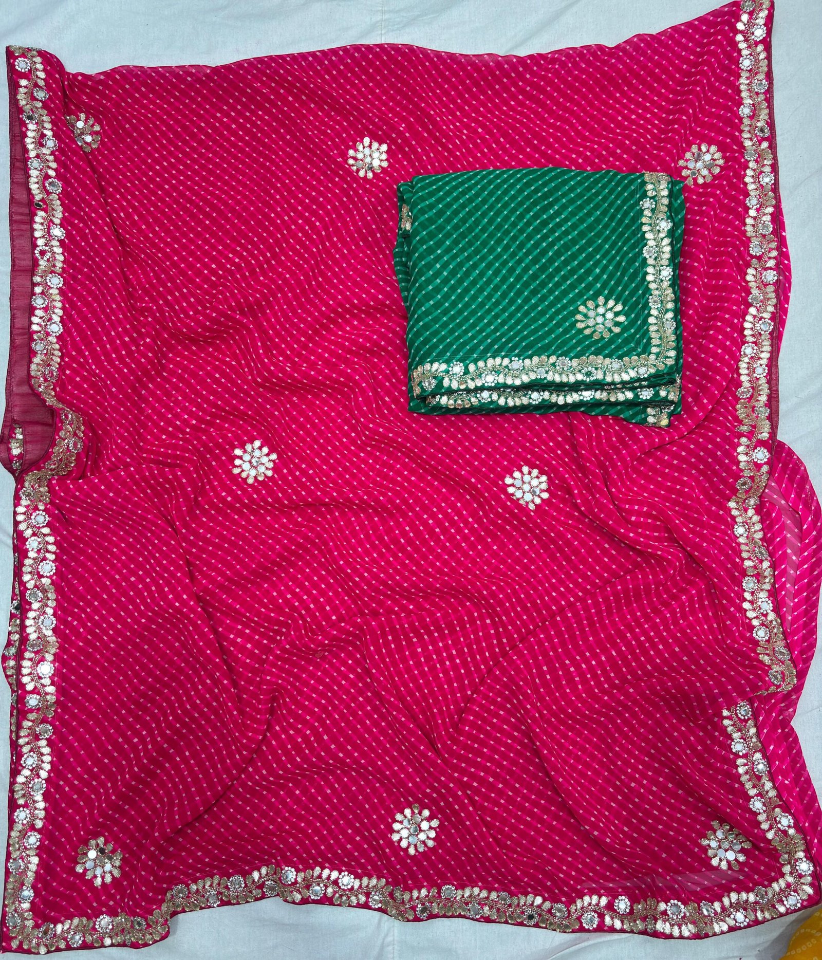 Celebrate timeless elegance with our beautifully crafted Mothda fabric saree, a perfect blend of tradition and grace. Known for its iconic checkered pattern and rich heritage from Rajasthan, this saree is designed for women who appreciate cultural artistry. The fabric is soft, lightweight, and drapes effortlessly, making it suitable for long hours of wear during festive occasions or traditional gatherings. What truly sets this piece apart is the intricate handwork done on the full border and pallu, adding a luxurious and regal feel. Whether you’re attending a wedding or hosting a festive function, this saree ensures you’ll stand out with its vibrant colors and detailed craftsmanship. It’s not just clothing—it’s a piece of cultural pride, made with love to enhance your natural beauty.